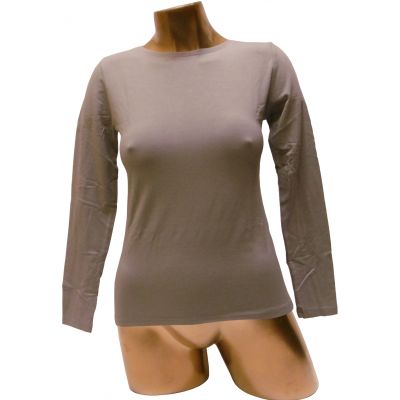 Klasyczna bluzka z długim rękawem dekoltem na okrągło, wykończonym wstawką.